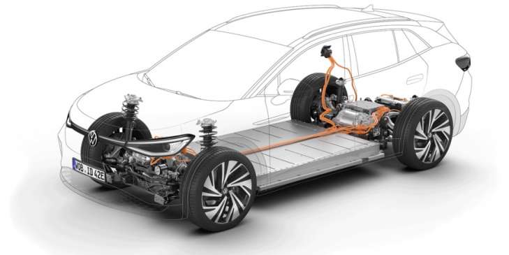 Синхронна машина (PSM) потужністю 150 кВт встановлена на задній осі, а асинхронна машина (ASM), встановлена на передній осі і вмикається при необхідності. VW заявляє, що головним елементом концепції приводу є інтелектуальна система управління, яка вирішує, "як розподіляти наявний крутний момент між двома електродвигунами, щоб завжди досягти відповідного оптимуму ефективності, динаміки та стабільності руху". У більшості ситуацій водіння на задній осі використовується тільки PSM; тут ASM не створює жодного підвищеного опору руху. Лише тоді, коли існує велика потреба в потужності або втрата зчеплення на задній осі, ASM вмикається протягом мілісекунд - як це зазвичай буває у багатьох електричних повнопривідних автомобілів.
