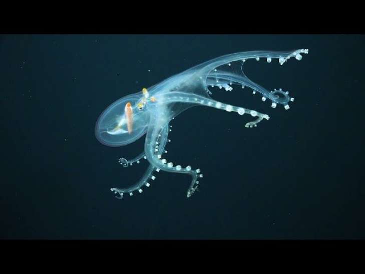 Ученые сняли на видео редкого прозрачного глубоководного осьминога