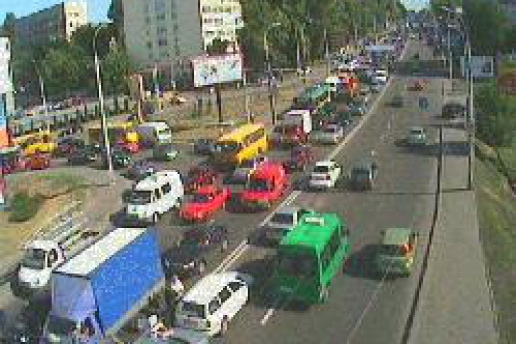 В данный момент движение на просп. Победы по направлению к ст. м. «Шулявская» заблокировано. Усложнено также и движение транспорта на Воздухофлотском мосту по направлению к ул. Артема.