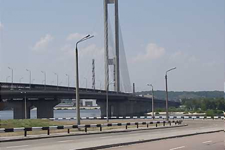 Грузовик с бревнами заблокировал Южный мост в Киеве