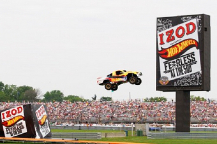 В рамках празднования 100-летнего юбилея знаменитых за океаном гонок «Индии-500» на треке Indianapolis Motor Speedway на специально подготовленном автомобиле Фауст умудрился пролететь 101,2 метра и благополучно приземлился.