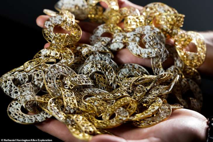 Также были обнаружены три золотые цепи и четыре подвески, которые носили члены священного ордена Сантьяго, религиозной группы рыцарей, весьма активных в испанской морской торговле.