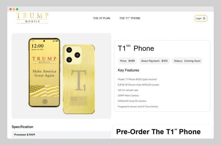 Как утверждается, абоненты смогут пользоваться услугами Trump Mobile с помощью как T1 Phone, так и других телефонов.