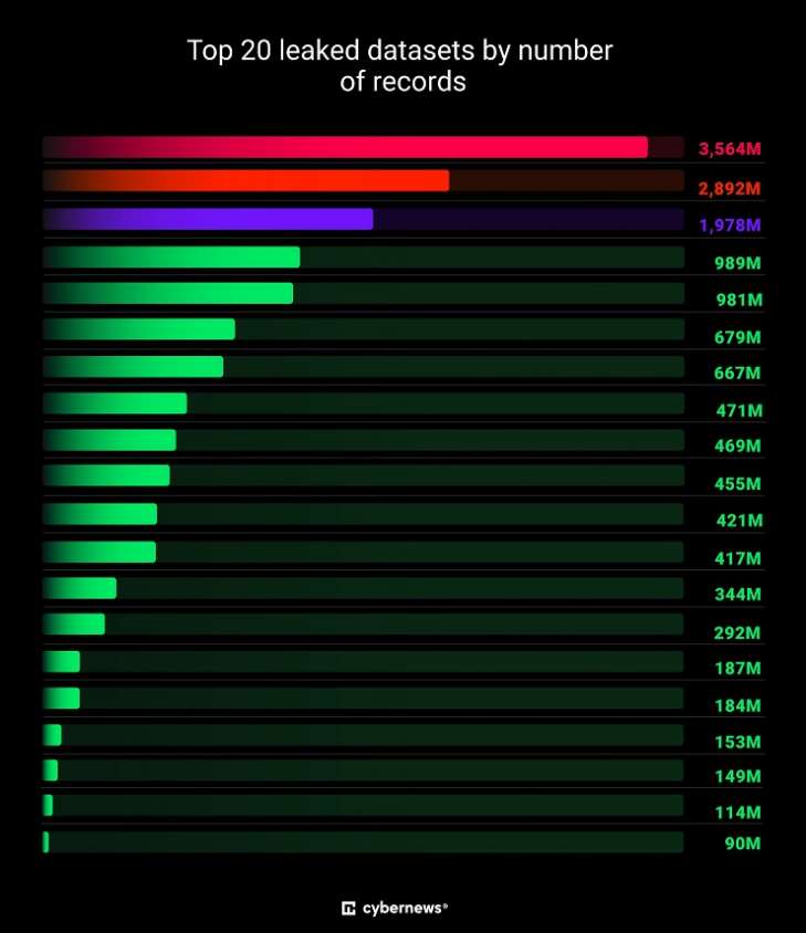Видання Forbes пише, що дослідники з Cybernews виявили витік 30 масивів особистих даних, кожен з яких містить від десятків мільйонів до 3,5 мільярдів записів - загалом 16 мільярдів. Це, ймовірно, найбільший витік даних за всю історію інтернету.