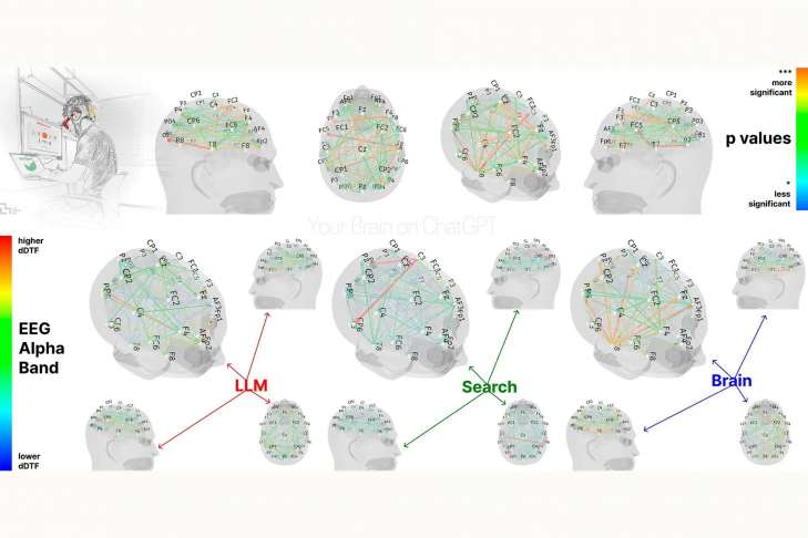 В експерименті 54 добровольці розділили на три групи: одні писали самі есе, інші - за допомогою Google, треті - повністю покладалися на ChatGPT. Весь цей час за їхньою мінливою мозковою активністю стежили через ЕЕГ.
