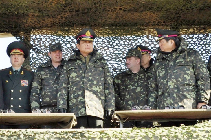 Сегодня, 20 марта, военная делегация Королевства Таиланд во главе с Главнокомандующим Королевской Тайской Армии генералом Прают Чан-О-Ча ознакомилась с боевыми возможностями украинского танка «Оплот». Об этом сообщает пресс-служба оборонного ведомства Украины.