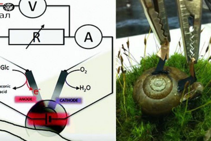 Исследователи, вживив электроды в улитку, превратили брюхоногий моллюск в маленькую топливную ячейку. Электроды были покрыты энзимами. Энзим первого электрода инициировал химическую реакцию, в результате которой поглощается глюкоза, синтезируемая улиткой, и производятся электроны. Энзим второго электрода поглотил свободные электроны и передал их положительным ионам гемолимфы улитки (эквивалент крови для улитки). Вместе эти реакции создали разность напряжений между электронами (больше, чем 0,53 В), генерируя мощность в несколько микроватт.