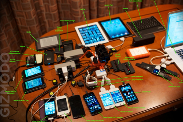 К сожалению, на фотографии представлены лишь аккумуляторные устройства на подзарядке, полный же список куда обширней.