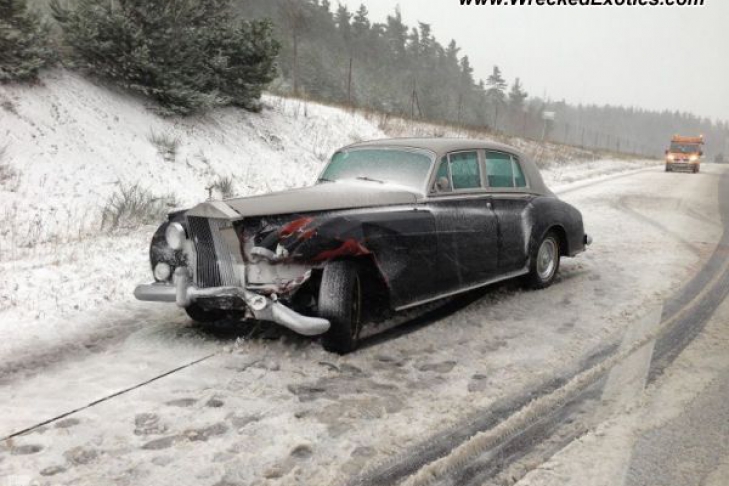 ДТП произошло во французской провинции Лозер, неподалеку от городка Monts-Verts. Двигаясь по заснеженной трассе A75, водитель Rolls-Royce Silver Cloud не справился с управлением и врезался в отбойник. В результате раритетный лимузин, цена которого может колебаться от $150 тыс. до $200 тыс., нуждается в серьезном ремонте.