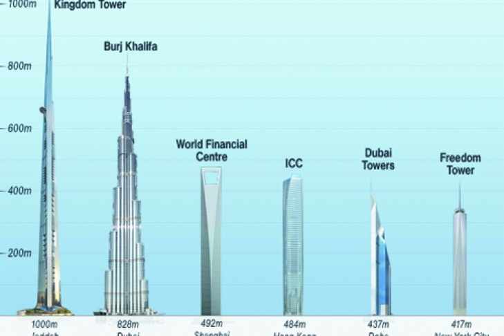 Небоскреб в Джидде высотой в 1000 метров, который получит название Kingdom Tower, превзойдет даже знаменитый Burj Khalifa в Дубае и станет наиболее высоким зданием земного шара.