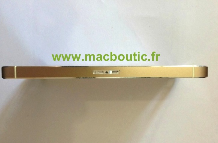 Слухи о «золотом» корпусе нового iPhone 5S, премьера которого запланирована на начало сентября 2013 года, обретают подтверждение. В Интернет попали снимки корпуса, в котором, предположительно, будут выпускать смартфон. Также источники прогнозируют, что гаджет будет оснащен 64-разрядным процессором ARMv8 A7 SoC, функцией сканирования отпечатка пальца через сапфировое стекло на месте «главной кнопки» и максимальный объем памяти в 128 Гб, сообщают СМИ. Фото были выложены на сайте Macboutic.fr.