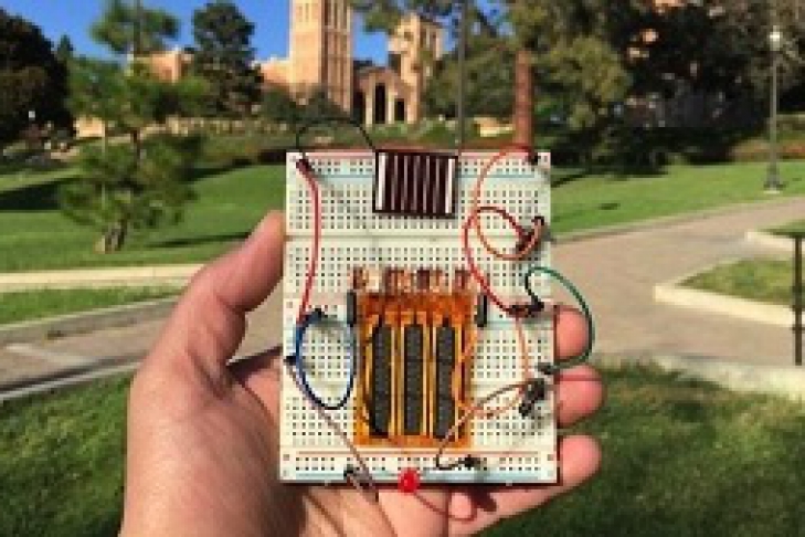 Исследователи Института наносистем Калифорнийского университета в Лос-Анджелесе скомбинировали два наноматериала в новом гибридном суперконденсаторе. Изобретение объединило в себе лучше свойства батарей и суперконденсаторов. Гибридный прибор отличается большой ёмкостью, быстро перезаряжается и способен выдержать более десяти тысяч циклов перезарядки.
