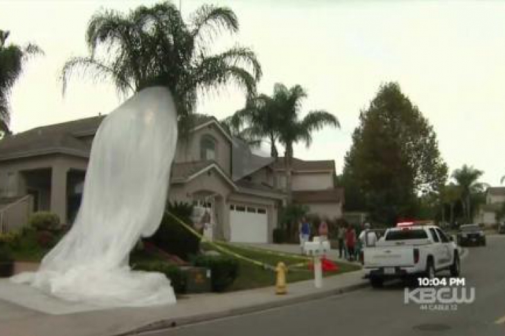Сначала хозяйка дома подумала, что ее соседи закрыли дерева перед покраской. Соседи выдвинули версию, что во двор дома упал спутник на парашюте.