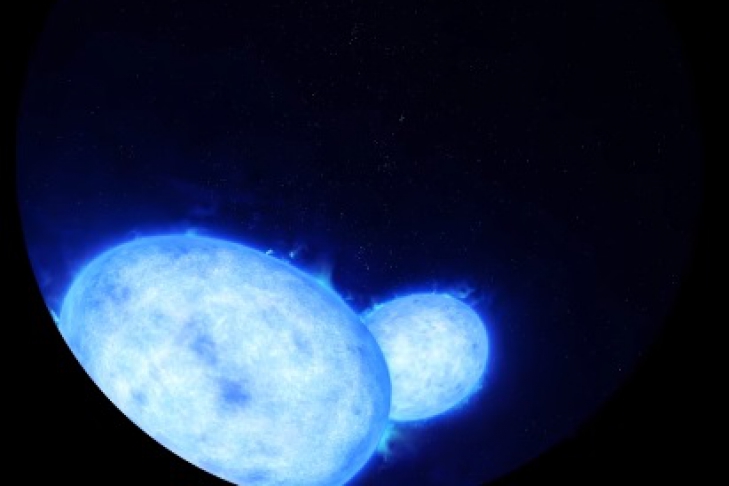 Международная группа астрономов при помощи Очень Большого Телескопа (VLT) ESO обнаружила очень горячую и массивную двойную звезду. Ее компоненты расположены так близко, что соприкасаются друг с другом.