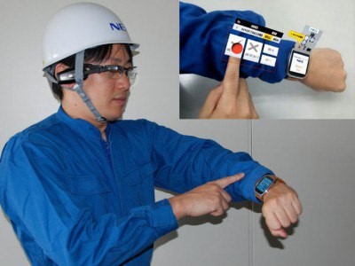 Компания NEC представила прототип системы, позволяющей с помощью смарт-часов и специальных очков проецировать на запястье человека клавиатуру. Система получила название ARmKeypad и даёт возможность пользователю видеть и взаимодействовать с проекционной клавиатурой. Так, камера в очках следит за движениями пальцев человека и отслеживает прикосновения к виртуальным клавишам, а набираемый текст передаётся на дисплей "умных" часов.