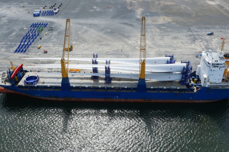 Лопасти для самой крупной в мире ветряной электростанции прибыли в Белфаст. Об этом говорится в сообщении крупнейшего порта Северной Ирландии Белфаст Харбор. Каждая из шести 80-метровых лопастей весит 35 т, все они будут использованы в гигантской морской ветряной электростанции у побережья Ливерпуля площадью 40 кв. км.