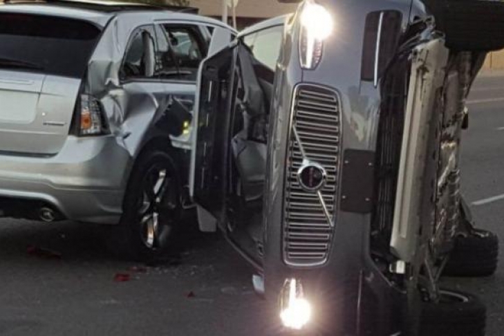 В Uber говорят, что их машина - Volvo SUV - на момент аварии находилась в режиме самостоятельного управления. В инциденте никто не пострадал.