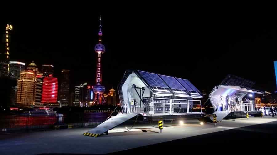 Мусороперерабатывающий аппарат Trashpresso помещается в 12-метровый контейнер, который можно перевозить по отдаленным территориям, где нужно утилизировать мусор. После распаковки на месте система может мыть, измельчать, плавить и формировать пластик и ткани в плитки, которые, по словам разработчиков, можно использовать как напольный или кровельный материал.