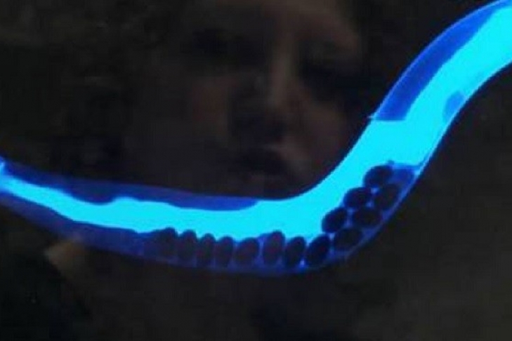 Ученым удалось снять на видео процесс смерти организма червя. Пока объект умирал, по его телу распространялись синие флуоресцентные волны. Об этом сообщает TopNews.