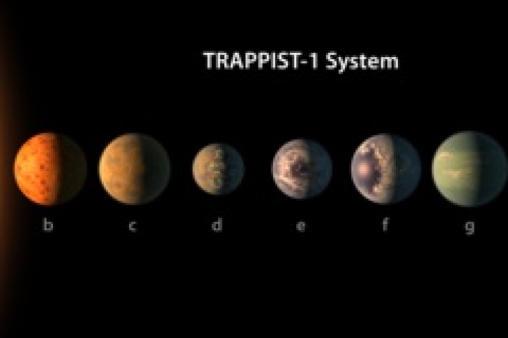 "Три планеты TRAPPIST-1 находятся в "жизненной зоне" звезды, орбитальной расстоянии, где скалистая планета с атмосферой может иметь жидкую воду на ее поверхности. Все семь планет, вероятно, плотно заперты за своей звездой, каждая из которых имеет вечный день и ночь", - было отмечено учеными на пресс-конференции NASA в Чили.