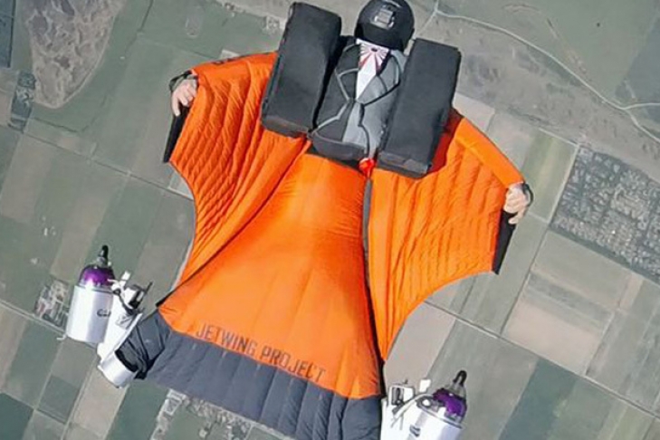 Экстремал прыгнул с высоты, прикрепив реактивные двигатели к ботинкам (видео)