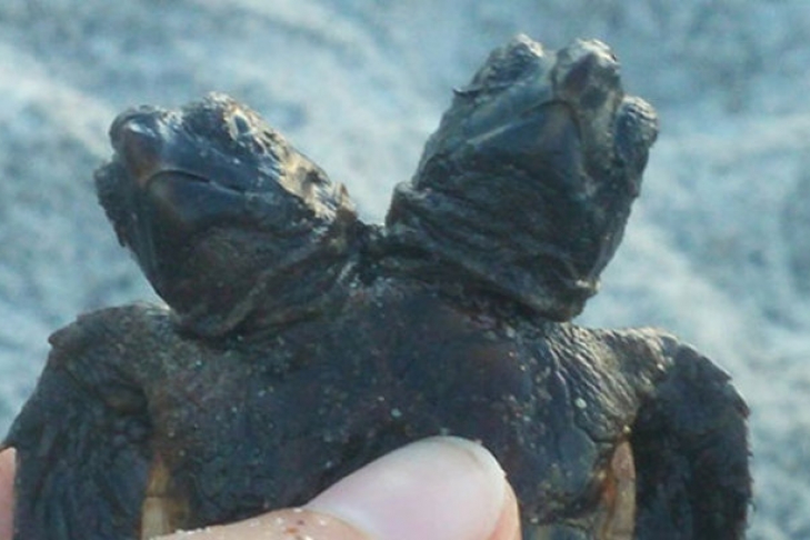 Биолог из университета Флориды Кейт Мэнсфилд опубликовала фотографию двухголового детеныша черепахи у себя в "Твиттере".