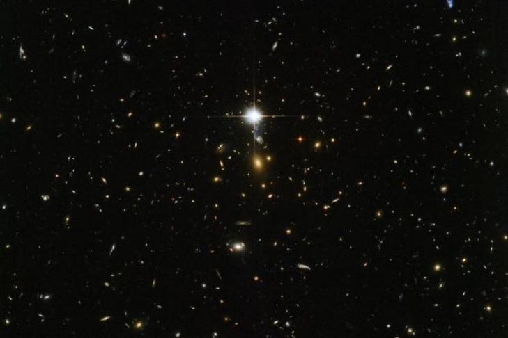 Как отмечают исследователи, каждое светящееся пятнышко на этом снимке – это галактика, кроме самой яркой вспышки в центре изображения – это свет от звезды, лежащей в пределах нашей галактики. Далеко за звездой в центре изображения находится массивное галактическое скопление WHL J24.3324-8.477.