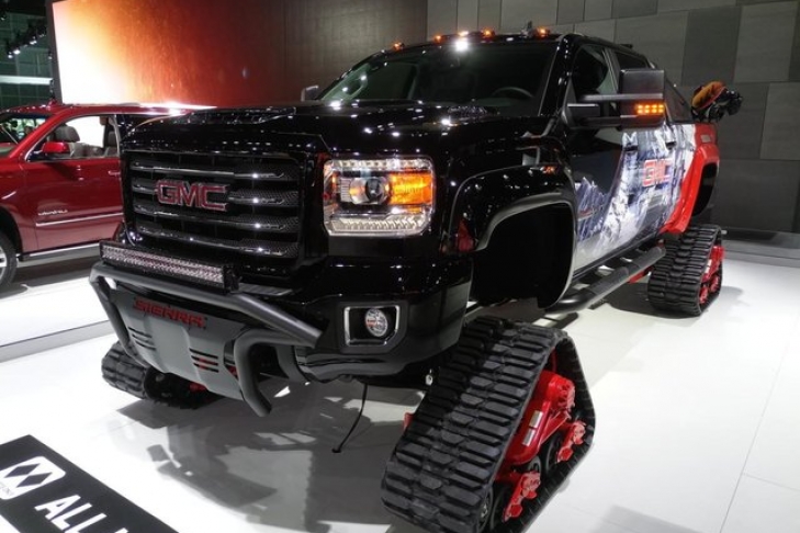 В основе авто лежит GMC Sierra HD, однако вместо колес у него теперь гусеницы. К слову, они выполнены съемными, так что летом пикап может передвигаться на колесах.
