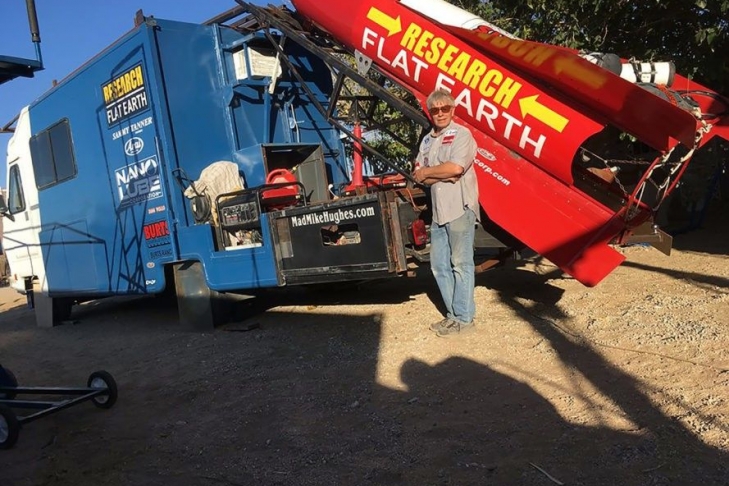Майк Хьюз верит, что земля на самом деле – не круглая, а плоская. Свою точку зрения он активно отстаивает в соцсетях. В дальнейшем он хочет построить мощную ракету, которая позволит ему своими глазами проверить свою теорию.