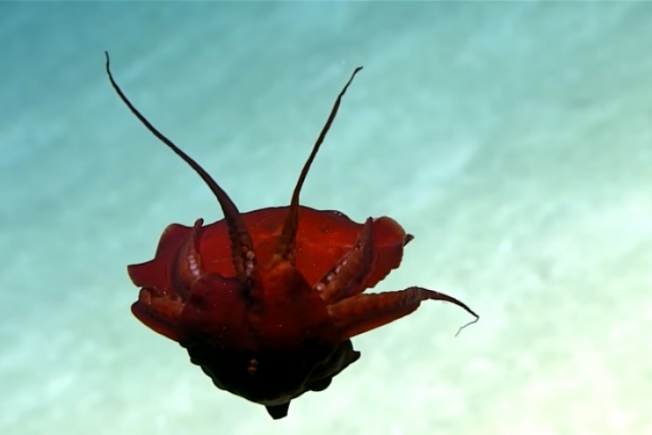 Ученые команды Okeanos Explorer, которая работает под руководством Национального управления океанических и атмосферных исследований США, получили видео необычного подводного жителя Мексиканского залива. Как сообщает National Geographic, существо одновременно напоминает кальмара и наутилуса, передает zn.ua.