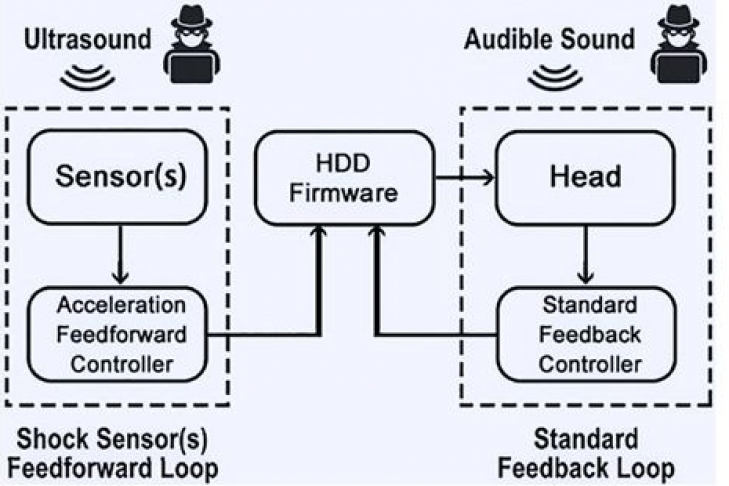 Современные механические жёсткие диски используют опирающиеся на датчики упреждающие контроллеры, чтобы регулировать положение головки жёсткого диска. Используя ультразвуковые колебания, злоумышленник может вызвать ложные срабатывания, приводящие к парковке головки. Звуковые сигналы также могут заставлять вибрировать головку чтения и записи, что будет приводить к плохому позиционированию над магнитной поверхностью и работе вне нормальных параметров. Жёсткий диск будет функционировать не так, как задумано производителем, что может повредить как сам диск, так и хранящиеся на нём файлы.