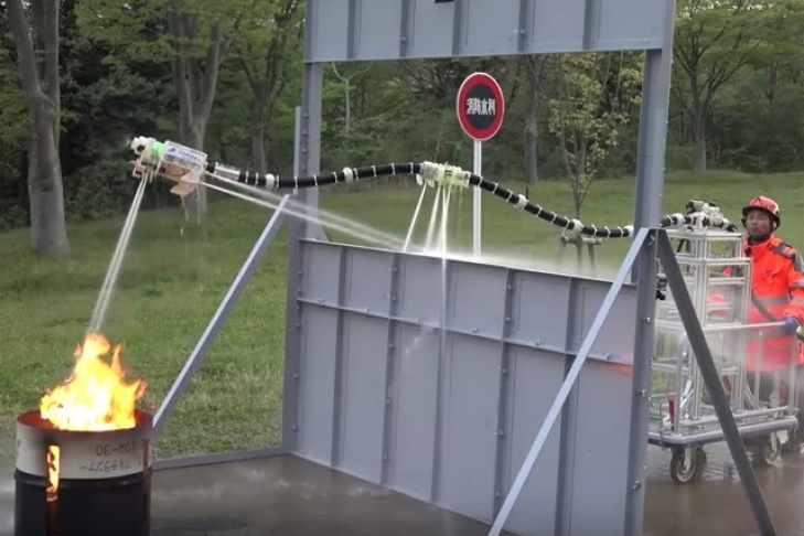 На Международной конференции IEEE по вопросам робототехники и автоматизации, проходившей в прошлом месяце, исследователи из университета Тохоку и Национального технологического института, Япония, продемонстрировали подобного змее противопожарного робота. Как и другие подобные роботы, "противопожарная змея" способна проникнуть в здание сквозь дверные, оконные проемы или через меньшие служебные отверстия. Этот робот передвигается за счет подаваемой в него под большим давлением воды, которая бьет вниз через специальные сопла, подобные соплам реактивных двигателей.