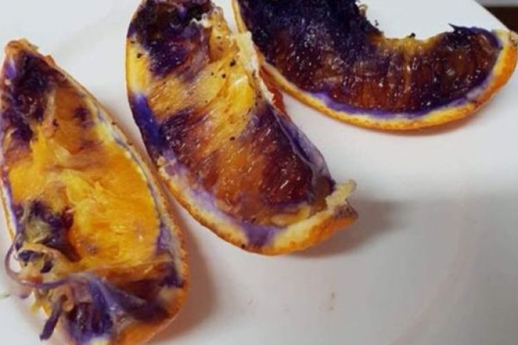 Отмечается, что двухлетний сын Моффитт съел несколько долек, когда женщина увидела, что оставшаяся часть апельсин стала фиолетовой.