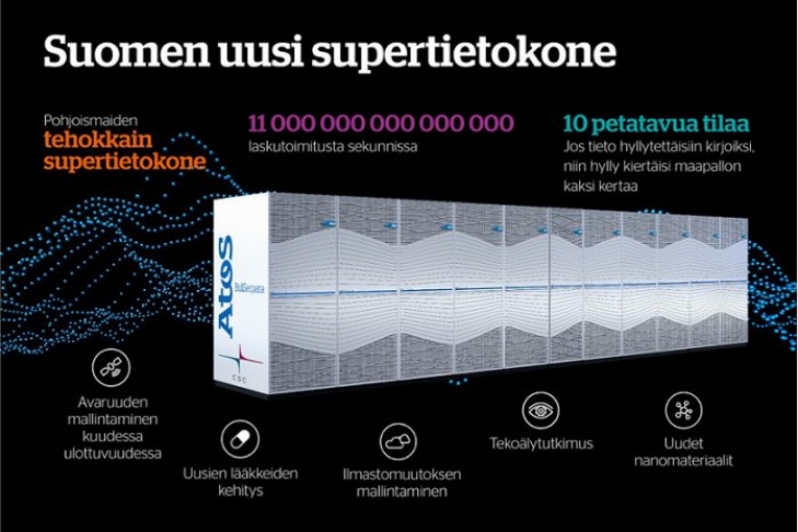 Французька компанія Atos підписала контракт з фінським науковим центром CSC на поставку нового суперкомп’ютера. Реалізація проекту, на який виділено 37 млн євро, в п’ять разів збільшить обчислювальні ресурси, доступні фінським ученим. Розгортання системи планується виконати за півтора року в два етапи. На першому етапі буде встановлено кластер Atos BullSequana X400 на процесорах Intel Xeon Cascade Lake з повітряним охолодженням. Його продуктивність складе 2 PFLOPS. Крім того, на першому етапі планується розгорнути кластер з 320 прискорювачами Nvidia V100 (по чотири на обчислювальний вузол). Його пікова продуктивність складе 2,5 PFLOPS. Перший етап повинен бути завершений влітку 2019 року, інформує itechua.com.
