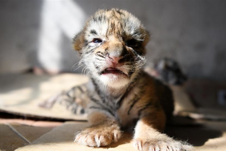 В сети появились фото новорожденных тигрят, относящихся к исчезающему виду
