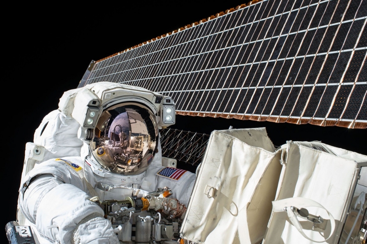 Астронавты перевели скафандры в режим автономного питания в 15.27 мск. Им предстоит провести на внешней поверхности станции около 6,5 часов.