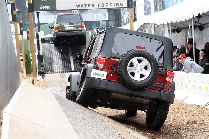 В шестой раз за свою историю американский автопроизводитель Chrysler Jeep открыл на автосалоне в Нью-Йорке (проходит со 2-го по 11-ое апреля) грандиозный автомобильный аттракцион под названием Jeep Camp. Поскольку площадь Нью-Йоркского автосалона составляет 25 квадратных километров, прямо на территории авто выставки специалистами Jeep были смонтированы настоящие «бездорожные» препятствия. Все желающие могут сесть за руль и попробовать себя в качестве «джипера», преодолевающего бездорожье. Опытным водителям для преодоления всего маршрута требуется около 5 минут.