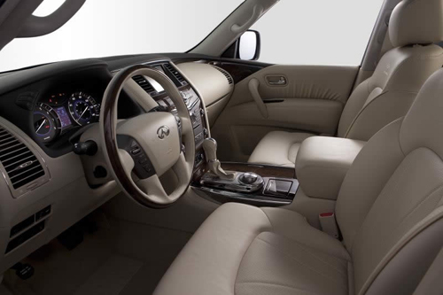 Заглянув в салон нового QX, можно сказать всего два слова: роскошь и комфорт. И это, пожалуй, будет достаточно исчерпывающий комментарий. Новый Infiniti QX создан, чтобы привлекать внимание. Тачка, надо сказать, со всеми «понтами». Есть все и даже больше. Чего стоит только навигационная система Infiniti со встроенным жестким диском, монитор кругового обзора (Around ViewO), высококачественная 2-канальная аудиосистему Bose® с 13 акустическими колонками и информационно-развлекательная DVD-система с 7-дюймовыми цветными дисплеями, которые позволяют одновременно воспроизводить изображения с различных носителей. Короче… Осталось только посмотреть, как все эти «навороты» ездят. Предполагается, что на рынке стран СНГ новый QX появится уже в конце лета 2010-го года. Что ж, подождем, а там уж посмотрим на него в деле.