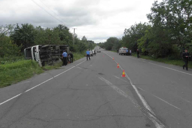 Вчера, в 10 часов 30 минут, на Волыни, в с. Луч Луцкого района, водитель автобуса «ПАЗ-3205», двигаясь в направлении г. Луцк, не справился с управлением из-за разрыва шины заднего правого колеса. Неуправляемый автобус пересек полосу встречного движения и перевернулся в кювет.