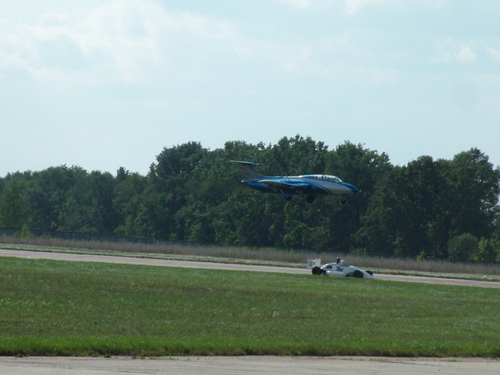 В воскресенье на авиасалоне «Авіасвіт ХХІ», проходящем в Гостомеле, свое шоу покажет Киевский городской автомотоклуб (КМАМК). Его президент, чемпион Украины по кольцевым гонкам Сергей Малик за рулем болида «Формула-1600» будет соревноваться в скорости с реактивным самолетом Л-29 «Дельфин», пилотируемым Сергеем Филатовым.