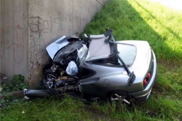 Водитель Ferrari 360 Modena, разогнал свой болид до огромной скорости, и в какой - то момент машину выбросило с дороги. В результате чего автомобиль буквально «влип» в железобетонную стену.