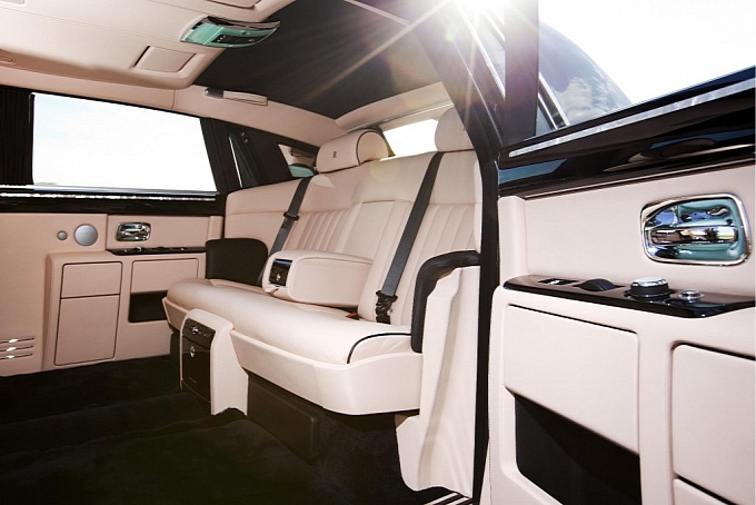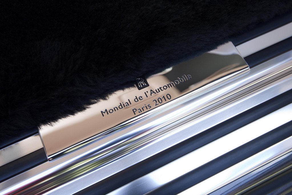 Кроме эффектного цветового исполнения и кожаного салона, Phantom Extended Wheelbase имеет в арсенале парочку новых фишек в дизайне салона. Измерительные приборы с перламутровыми «вкраплениями» и подголовники с RR-монограммами, именная пластина «Mondial de l’Automobile Paris 2010», напоминающая о грандиозном мероприятии в автоиндустрии…