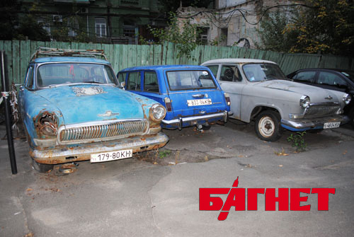 Мы походили киевскими двориками и сфотографировали для вас парочку машин. Вот эти пять авто (четыре волги и один москвич) стоят в одном дворе по адресу Пушкинская,14: