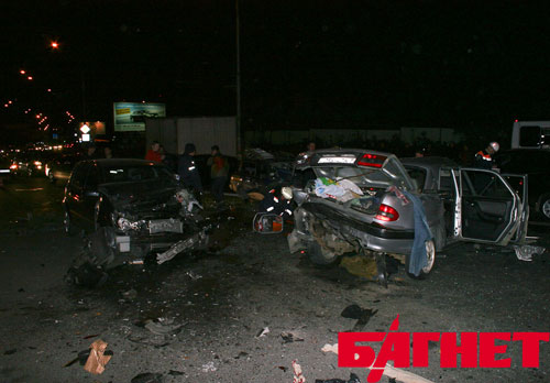 По словам свидетелей происшествия, водитель грузовика, спускавшегося в сторону ул. Гринченко, не справился с управлением. В результате он выехал на полосу встречного движения, где столкнулся с тремя легковыми автомобилями. Первым на его пути был ГАЗ 31, затем ВАЗ и HYUNDAI, потом, срикошетив от машин, грузовик вернулся на свою полосу и врезался в столб. Удар был настолько сильным, что у грузовика оторвалась кабина.
