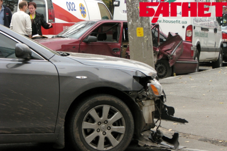 Как рассказали очевидцы аварии, Nexia двигалась по Верхнему валу. Проезжая перекресток с Почайниской на зеленый сигнал светофора, автомобиль получил сильнейший удар в борт. Как оказалось, водитель Toyota Camry проигнорировал светофор и знак «стоп» и выскочил на перекресток. От удара Daewoo развернуло и бросило на припаркованный микроавтобус.