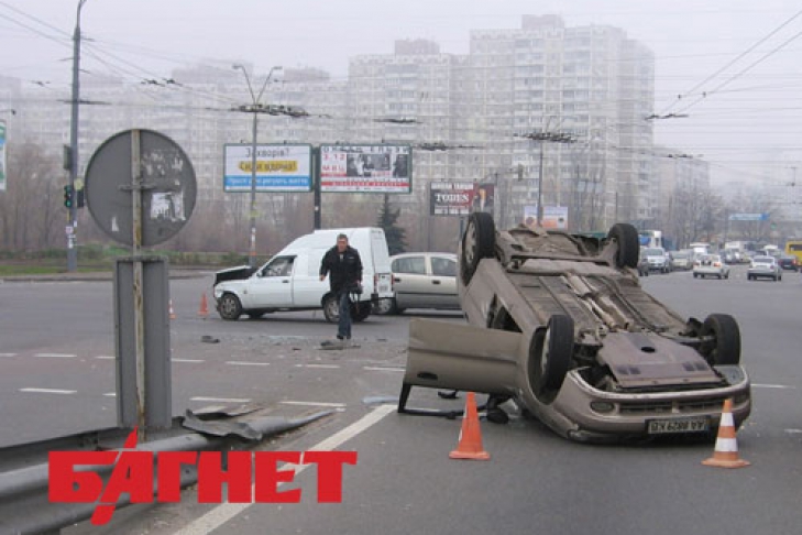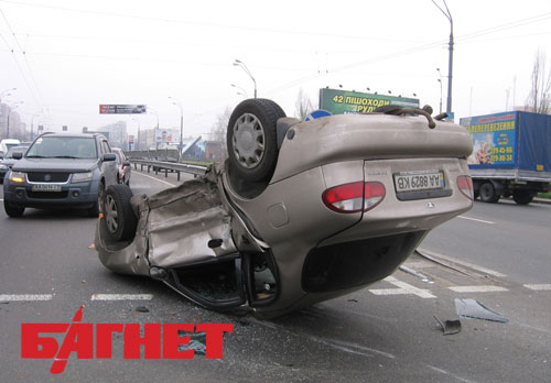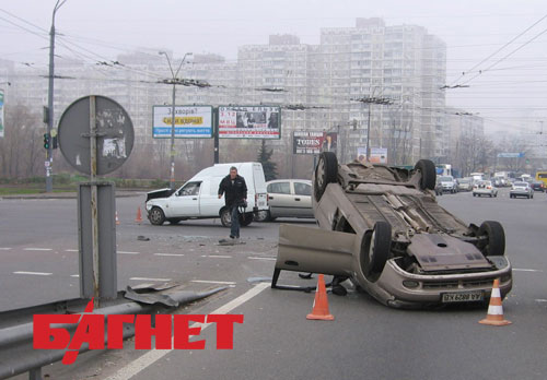 По рассказам очевидцев аварии, Таврия ехала во втором ряду в сторону Троещины. Водитель Lanos по каким-то причинам решил проскочить перекресток в сторону бульвара Перова. В результате, Daewoo получил серьезный удар в борт, отчего автомобиль перевернулся, а Таврия вылетела на другую часть перекрестка и развернулась. Оба водителя с разными травмами госпитализированы в БСМП.