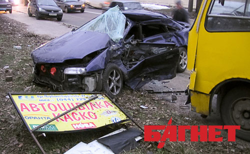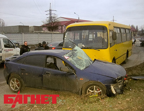 Вчера, 27 декабря, в Дарницком районе водитель автомобиля Mazda грубо нарушил ПДД. «Японец» выехал с улицы Усенко на Красногвардейскую, не уступив дорогу автобусу «Богдан». Водитель автобуса не успел среагировать на внезапно возникшее препятствие и на полном ходу врезался в легковушку и протащил ее около пятнадцати метров, попутно зацепив Skoda, ехавший навстречу. В результате аварии пострадали три человека, среди которых семилетний ребенок и водитель Mazda.