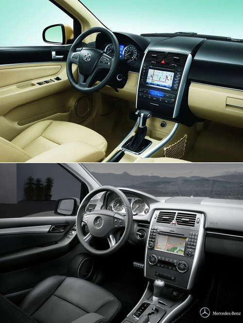 Китайский вариант В-класса имеет чуть другую оптику, измененную решетку радиатора, иную крышку багажника и, конечно же, новую эмблему. Внутри обе машины тоже похожи друг на друга. Хотя немецкий хэтчбек все-таки выглядит поблагородней.