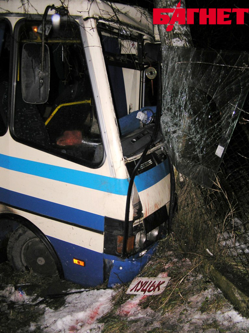 Около 18 часов 52-летний водитель Ярослав, управляя автобусом, ехал в направлении автодороги Киев-Чоп. За 700-800 метров до нее водитель не смог справится с управлением, объезжая одну из луж, после чего выехал на полосу встречного движения, съехал в левый по ходу движения автомобиля кювет. Автобус врезался в придорожное дерево, лобовое стекло разбилось, пассажиры, дремавшие на заднем сидении, по инерции вылетели к выходу. На их головы посыпались банки и другие предметы.
