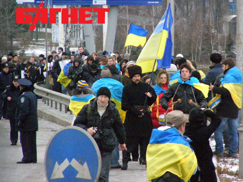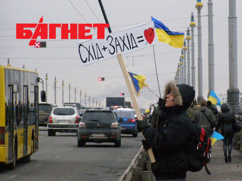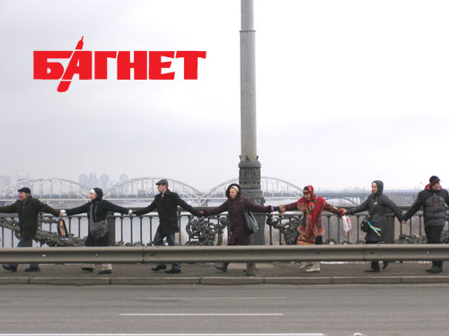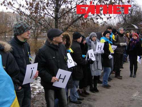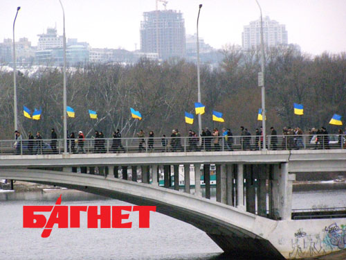 В «цепочках» звучали украинские народные песни и, конечно, гимн Украины. Люди заряжали друг друга хорошим настроением, проезжающие мимо автомобили сигналили, и даже усталые бабушки в троллейбусах начинали улыбаться. Однако не все активисты смогли выдержать испытание холодом: не дождавшись окончания акции, стуча зубами, некоторые покидали мост. Потеряв часть своих звеньев, цепочка в итоге немного не дотянулась до правого берега. И все же символичное действо состоялось – около 12:00 правый и левый берега Украины были соединены!